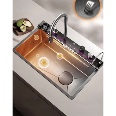 Çeşitli kullanım senaryoları için ideal Şelale ağzı ile kombine edilmiştir. Kesme, yıkama ve temizleme için 5 modu bir arada sunar: dilimleme su çıkışı, bel sprey su çıkışı, su sütunu çıkışı, şelale çıkış modu ve ultrasonik temizleme fonksiyonu.